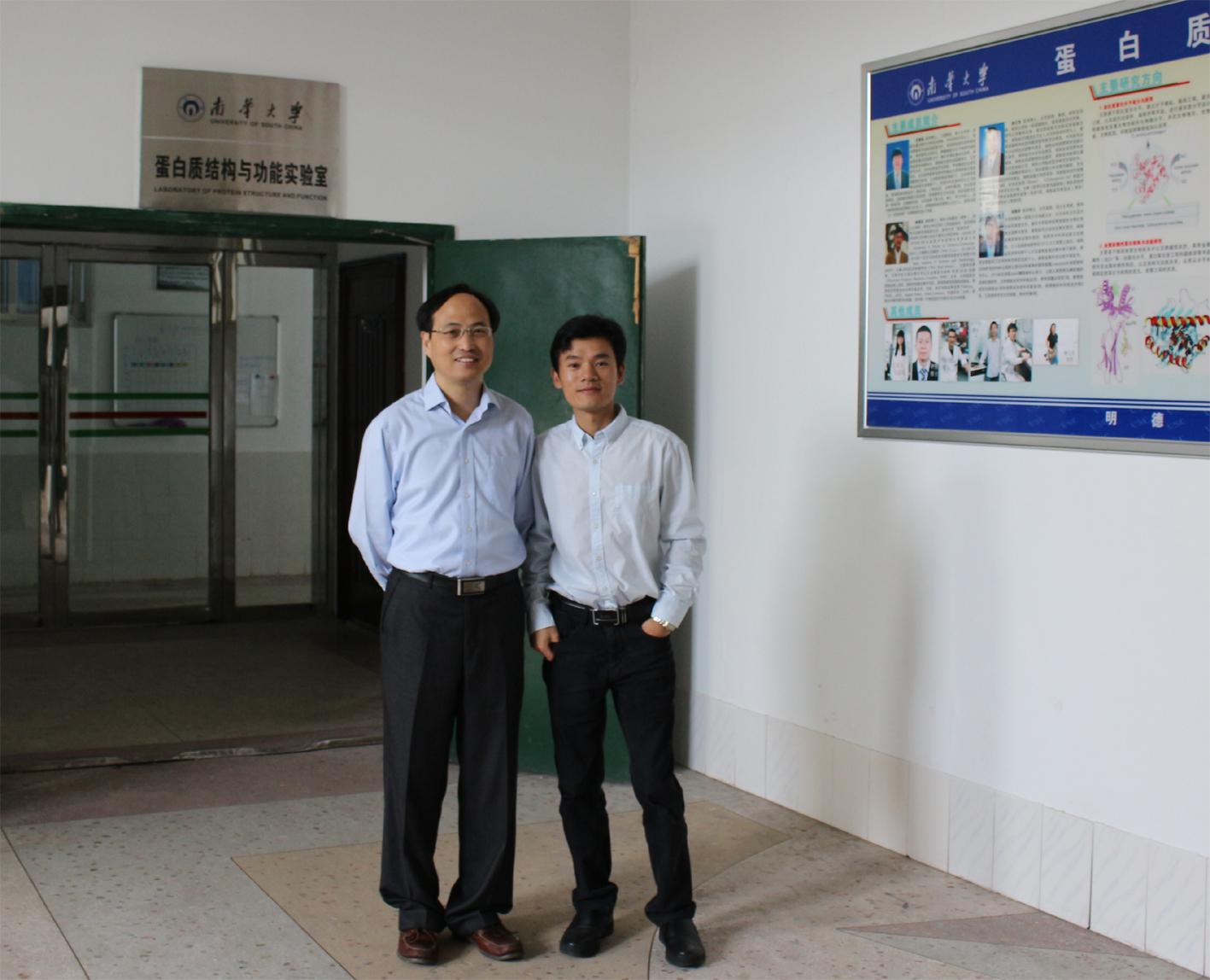 刘扬中教授(左)参观sunbet申搏蛋白质结构与功能实验室