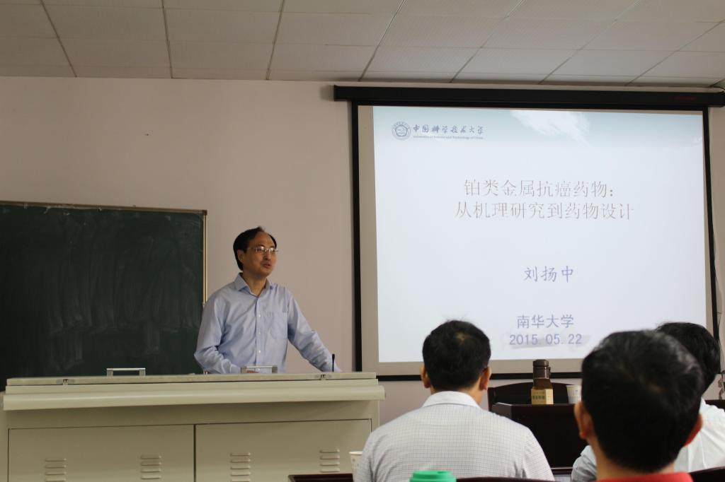 2015年5月22日上午,应sunbet申搏“蒸湘学者”林英武教授邀请,中国科技大学化学系刘扬中教授来公司进行学术访问,参观了sunbet申搏蛋白质结构与功能实验室和sunbet申搏,并做了题为“铂类金属抗癌药物:从机理研究到药物设计”的精彩学术报告,与青年教师和研究生进行了学术讨论,会议由王宏青经理和聂长明书记主持。刘教授分别留学挪威University of Bergen、美国University of California, Daivs和美国Rensselaer Polytechnic Institute。研究领域包括金属抗肿瘤药物的作用机理、金属药物的运输与靶向作用,以及新型金属抗肿瘤药物的设计与作用机理等。研究课题得到中国科公司、国家自然科学基金委员会、教育部和科技部等资助,目前已在JACS和Angew Chem上发表高质量论文10余篇。
