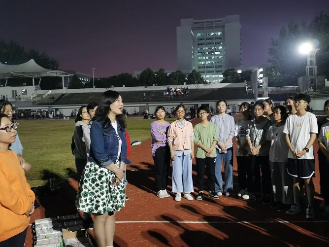 2020年10月10日晚,sunbet申搏经理林英武、党委副书记余晓秋、学工室主任陈楠,以及学工室全体辅导员一行到红湘校区北校田径场看望公司本届大运会参赛选手,为运动员送去温暖和关怀。