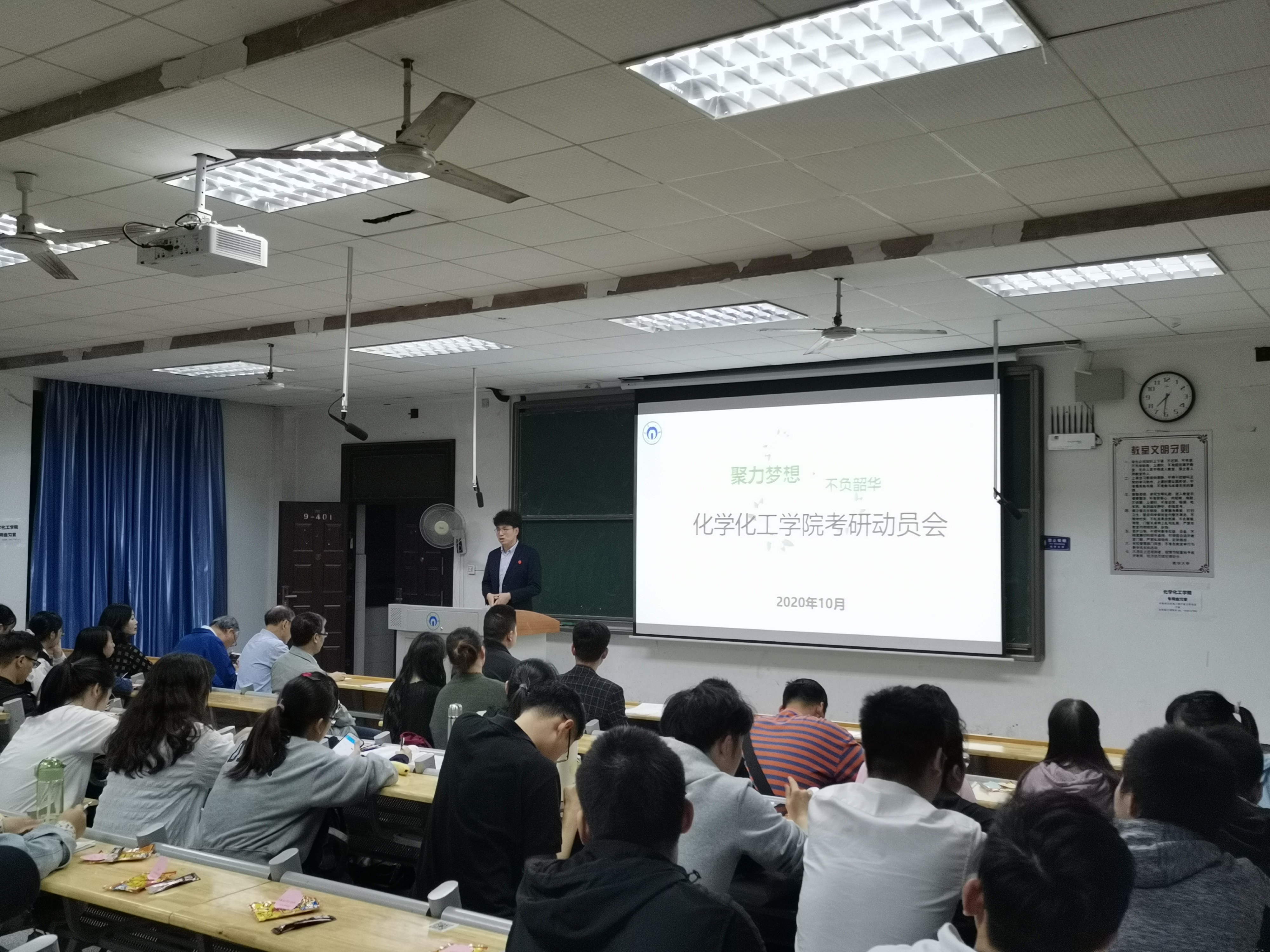 大会伊始,教室播放了2020届毕业生的祝福视频。来自复旦大学、天津大学、西安交通大学等多名学长学姐都纷纷送上各自的祝福。随后,刘霜阳给2021届考研员工在考研冲刺阶段提出了建议。接着,胡清华详细介绍了公司近期的科研发展和团队建设,并以自己的博士之路给同学们做了清晰的考研分析。然后,廖力夫从高校研究生的改革之路给同学们做了分析。充分强调英语作为研究生科研能力的重要性。大会最后,王宏青结合自身担任研究生导师的经历,给同学们详细分析从事科研的五个能力。期望同学在考研过程中实现个人转变,实现考研目标。