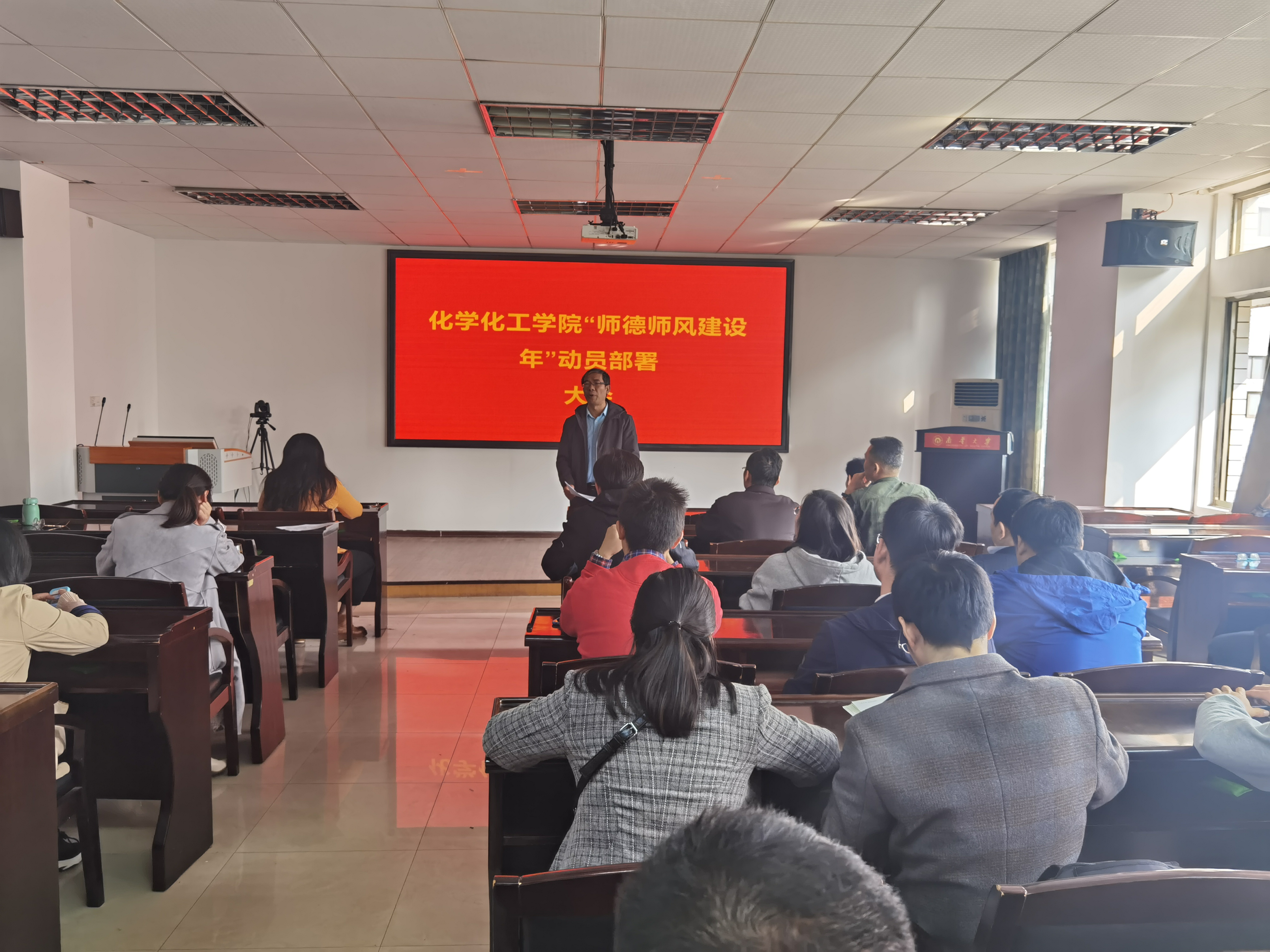 2021年10月22日下午3:00, sunbet申搏全体教职员工在学术报告厅9-411,召开了2021年“师德师风建设年”活动工作布署会,会议由公司党委书记王宏青教授主持,首先王书记组织大家认真学习了sunbet申搏《关于印发“师德师风建设年”推进方案的通知》精神。然后王书记就公司深入推进“师德师风建设年”活动进行动员部署,提出了工作目标要求、工作任务和时间节点,要求“师德师风建设年”各项工作要求人人皆知,并要求各支部认真组织、抓紧落实做好各项工作,要把师德德风建设深入员工、深入课堂、深入科研中,为建设高水平的大学作出突出贡献。