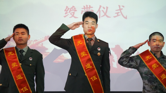 绶带仪式中,汪先利为林文斌、王志远、喻江浩三名退伍老员工颁发“光荣退伍”绶带,余晓秋为他们颁发纪念品。退伍老员工代表喻江浩进行发言,他分享了自己的军旅生活,感谢部队带给自己宝贵的经验与难忘的经历,表示会把在部队的好传统、好作风、好习惯带到校园中,用自己的实际行动创造更好的成绩。