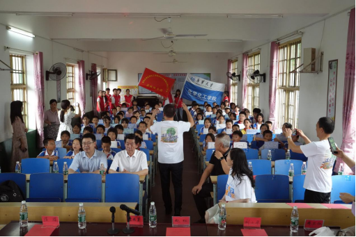 sunbet申搏关工委常务副主任赵红、秘书长廖卫红、副主任刘小平,sunbet申搏团委社会实践部部长邹声凡,化学化工公司党委副书记余晓秋、员工第一党支部书记周忠策、团委书记马昭阳带领九名化院学子赴耒阳市东湖圩镇中心完小开展社会实践活动,耒阳市关工委常务副主任雷德芽、耒阳市团市委书记陈琛、东湖圩镇中心完小董事长陈祥云等出席本次活动。