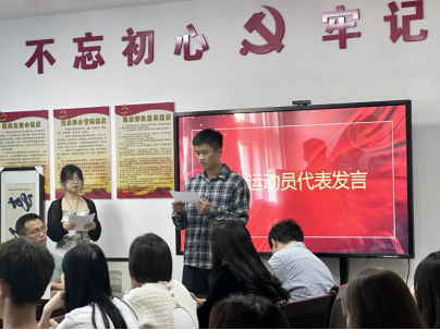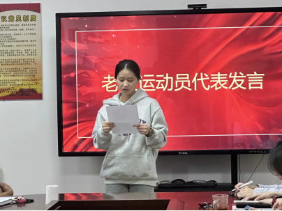 新生运动员代表廖威和老生运动员代表阙依婷分别发言。他们讲述了训练生活中的酸甜苦辣,有刻苦训练的咬牙坚持,有运动员之间的团结友爱,有老师同学的温馨关怀,并号召各位运动员全力以赴、永不放弃,努力创造出更好的成绩。