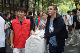 骄阳似火,迎新大道上的一抹红传递着新生入校的第一份热诚。引导的标牌、伸出的双手、忙碌的身影...饱含对新同学的诚挚欢迎。