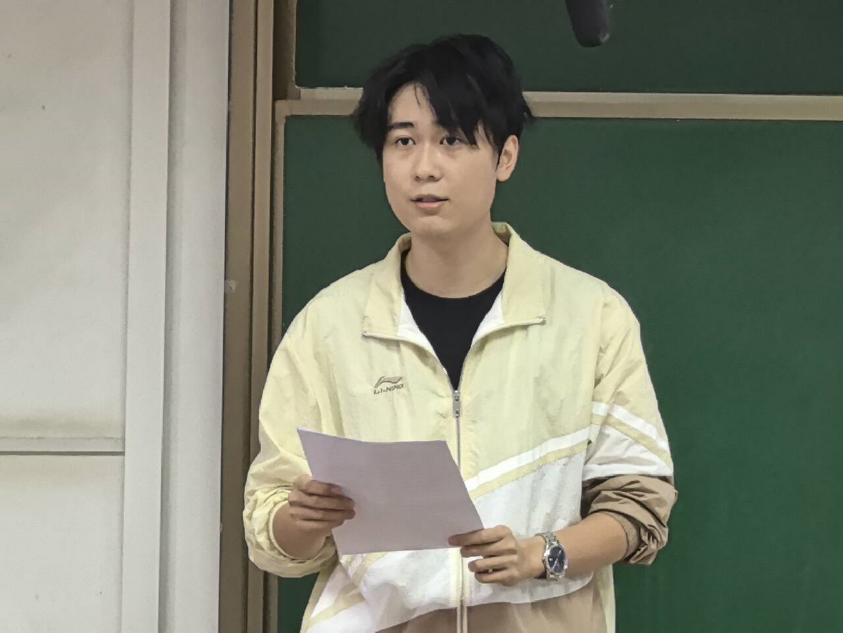 优秀工作人员代表张承霖发言,他总结本次大运会工作中各层面出现的问题,针对不同工作做出反思,表明将在未来的工作中吸取本次工作的经验与教训,走好团学工作新里程。