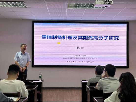 10月16日上午,昆明理工大学梅毅教授应公司邀请,在化工楼四楼学术报告厅为公司师生作了题为“黑磷制备机理及其阻燃高分子研究”的学术报告。报告会由林英武教授主持,王宏青教授、公司部分青年教师及研究生共同参会。