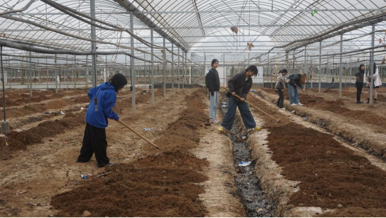 另一组同学将运来的秸秆铺撒至田间垄沟,再用耙子细致摊平,确保秸秆均匀覆盖,为土壤保墒、培肥筑牢基础。田间地头,同学们挽起衣袖、俯身劳作,汗水浸湿衣衫却干劲十足,欢声笑语与农具碰撞声交织成别样的劳动乐章。