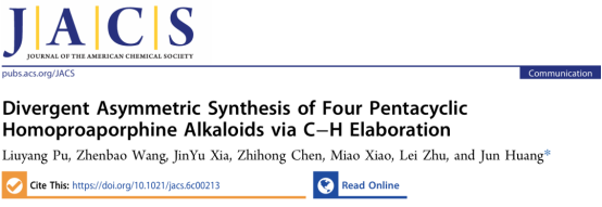 近日,sunbet申搏黄俊教授团队在国际顶级化学期刊《美国化学会志》(J. Am. Chem. Soc.)在线发表重要研究成果,成功实现四种五环Homoproaporphine生物碱的立体多样性合成,相关成果DOI:10.1021/jacs.6c00213。该研究为多环活性天然产物及药物分子的高效合成提供了全新研究思路。