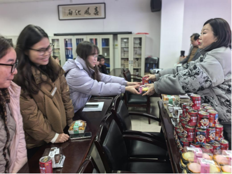 会议结束后,公司党委副书记余晓秋老师、辅导员马昭阳老师为即将参与复试的同学们送上蛋糕和旺仔牛奶,祝愿同学们步步登高、运气旺旺,能够在复试中取得良好的成绩。