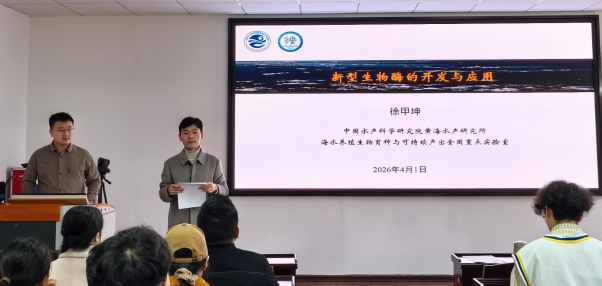2026年4月1日下午,中国水产科学研究院黄海水产研究所徐甲坤研究员,应邀到公司做了主题为“新型生物酶的开发与应用”的学术报告。讲座由sunbet申搏林英武经理主持,报告吸引了众多化学科研工作者和硕士研究生的关注和聆听。