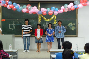9月22号晚,sunbet申搏中秋节晚会在点点烛光中拉开序幕。公司党委副书记彭建南、辅导员任辉老师、化工一班班主任王榆元老师、院主席团成员、教官以及本院全体大一新生均参加了晚会。