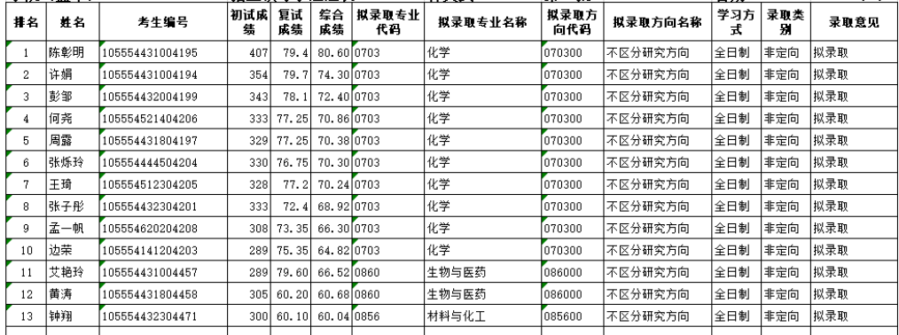 按照公司及公司研究生招生工作的复试方案,根据2024年4月1日的复试成绩排名,现公布最终拟录取名单如下。对复试成绩及上述同学的建议录取有异议,请以书面形式于2024年4月11日前向公司反映。反映情况要实事求是,具体真实,署真实姓名,以便调查核实。电话:0734-8282375,联系人:王老师。