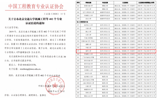近日,教育部高等公司产品评估中心下发《关于公布2019年度通过工程教育认证专业名单的通知》教高评中心函[2020]55号),中国工程教育专业认证协会《关于公布北京交通大学机械工程等402个专业认证结论的通知》(工认协[2020]15号)。sunbet申搏化学工程与工艺专业经过公司自评、专家组现场考查、分委员会审议、认证结论审议委员会审议等程序,获得“通过认证,有效期6年(有条件)”的认证结论。