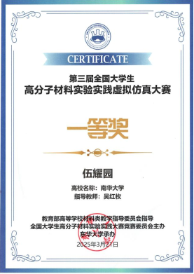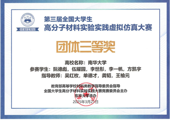 团体三等奖!一等奖2项!南华材料学子在第三届全国老员工高分子材料实验实践虚拟仿真大赛再创佳绩!