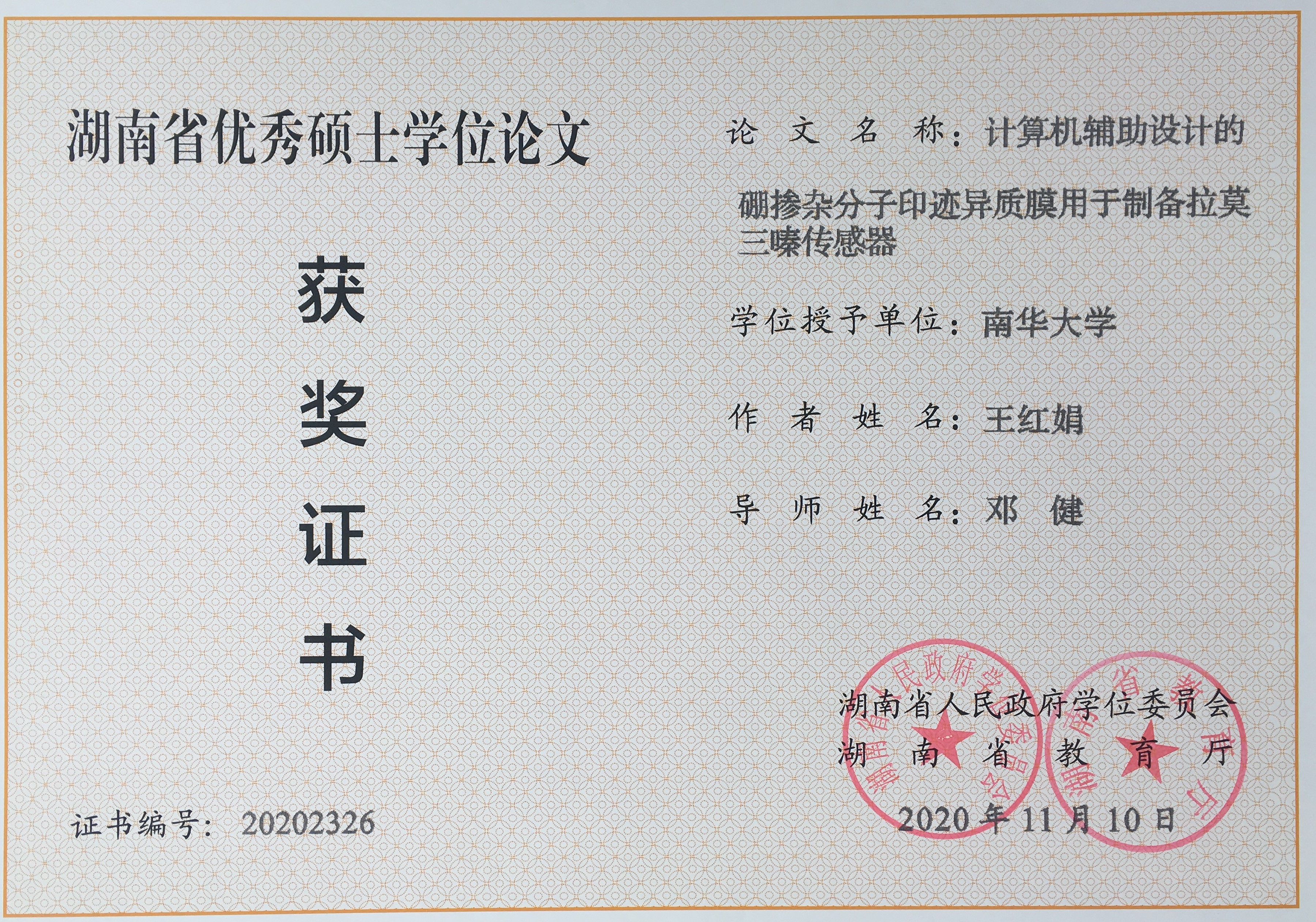 公司阳东旭、王红娟同学荣获2020年湖南省优秀硕士学位论文
