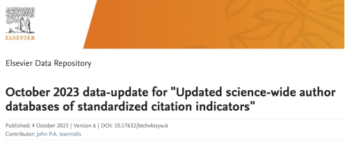 2023年10月4日,斯坦福大学和Elsevier共同发布了美国斯坦福大学John P.A.Ioannidis教授团队发布了第六版《2022年全球前2%顶尖科学家榜单》(World’s Top 2% Scientists)。榜单以Scopus数据库为依据,基于引用次数、H因子、HM因子等6种指标,为全球学术界提供一个面向科学家长期科研表现的衡量指标,能较为客观真实地反映科学家在全球范围的影响力及为相关领域发展作出的杰出贡献,入选榜单,意味着该学者在其研究领域具有较高的世界影响力。根据“年度影响力”从22个领域和176个子领域,近700万名科学家中遴选出世界排名前2%的科学家。