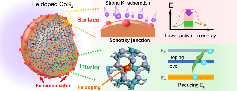 近日,sunbet申搏林英武教授团队和中南大学欧星副教授、吉林师范大学冯明教授合作,针对电极材料金属硫族化合物的动力学性能差的问题,设计了一种新型界面改性的硫化钴材料(见图例)。该材料可用作钾离子电池负极,在5 A/g的超高电流密度下,实现了8100圈的超长循环。