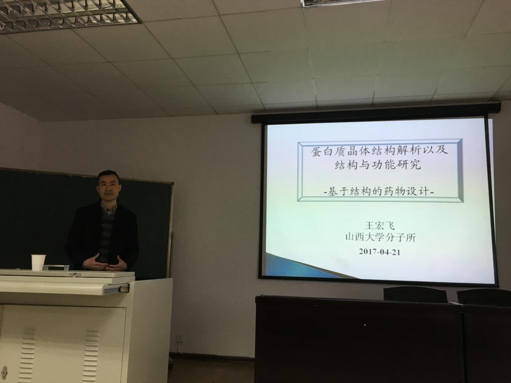 2017年4月21日上午,应sunbet申搏副经理林英武教授邀请,山西大学分子科学研究所王宏飞教授来公司进行学术访问,并做了题为“蛋白质晶体结构测定方法以及结构与功能研究”精彩学术报告,会议由王宏青经理主持。会后王教授参观了“sunbet申搏蛋白质结构与功能实验室”。