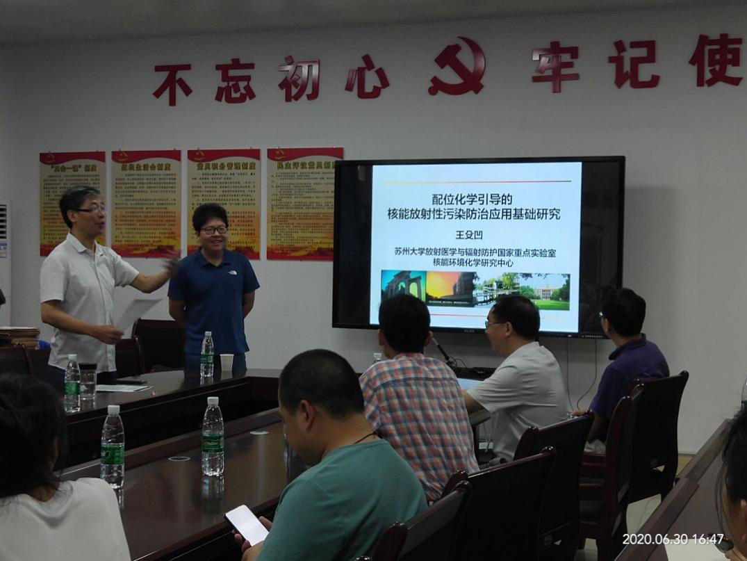 2020年6月30日下午4点30分,公司“船山大讲堂”系列学术讲座邀请到了苏州大学放射医学与防护公司副经理、苏州大学放射医学与辐射防护国家重点实验室核能环境化学研究中心主任、国家基金委杰出青年基金获得者王殳凹教授在化工公司9-416学术报告厅作了题为《配位化学引导的核能放射性污染防治基础研究》专题报告,报告由化工公司经理王宏青教授主持,化工公司及其他院系教师、研究生近百人聆听了本次讲座。