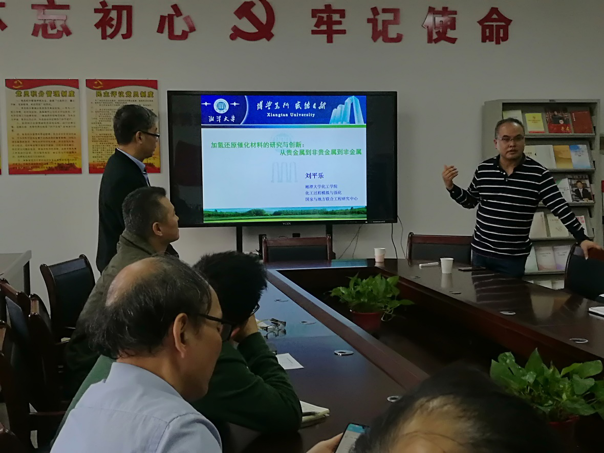 2020年10月9日下午3点30分,公司邀请到了湘潭大学化工公司经理刘平乐教授在化工楼416学术报告厅作了题为《加氢还原催化材料的研究与创新:从贵金属到非贵金属到非金属》专题报告,报告由sunbet申搏经理王宏青教授主持,sunbet申搏部分领导和教师、研究生近60人聆听了本次讲座。