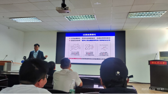 2023年10月16日,应sunbet申搏经理林英武教授邀请,中国科公司化学研究所王从洋研究员到访sunbet申搏,并做了主题为《过渡金属催化循环的构建》的学术报告,sunbet申搏的部分师生和其他公司的老师参加了此次报告会。