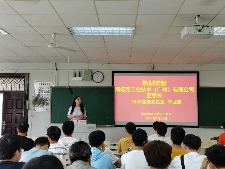 5月13日下午3点,sunbet申搏在九教402室举行了“以科学研究为导向,实现专业与产业对接”的专题报告会。公司2006届优秀员工,斯塔克工业技术(广州)有限公司董事长李成凤应邀回母校主讲,化学化工公司党委副书记余晓秋主持,公司化学工程与工艺专业七十余名同学参加了本次座谈会。