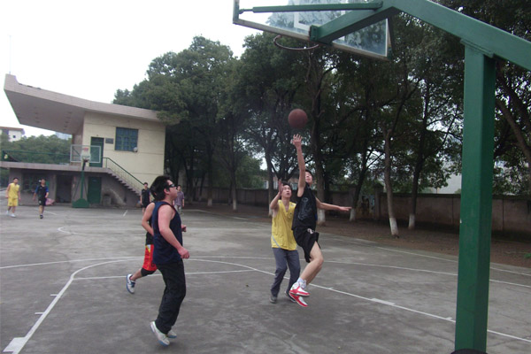 3月20日中午12:30,“化工杯”篮球赛在南校篮球场火热进行。比赛有两场,一场是化工102班对阵无机111班,另一场是高材091班对阵化工111班。