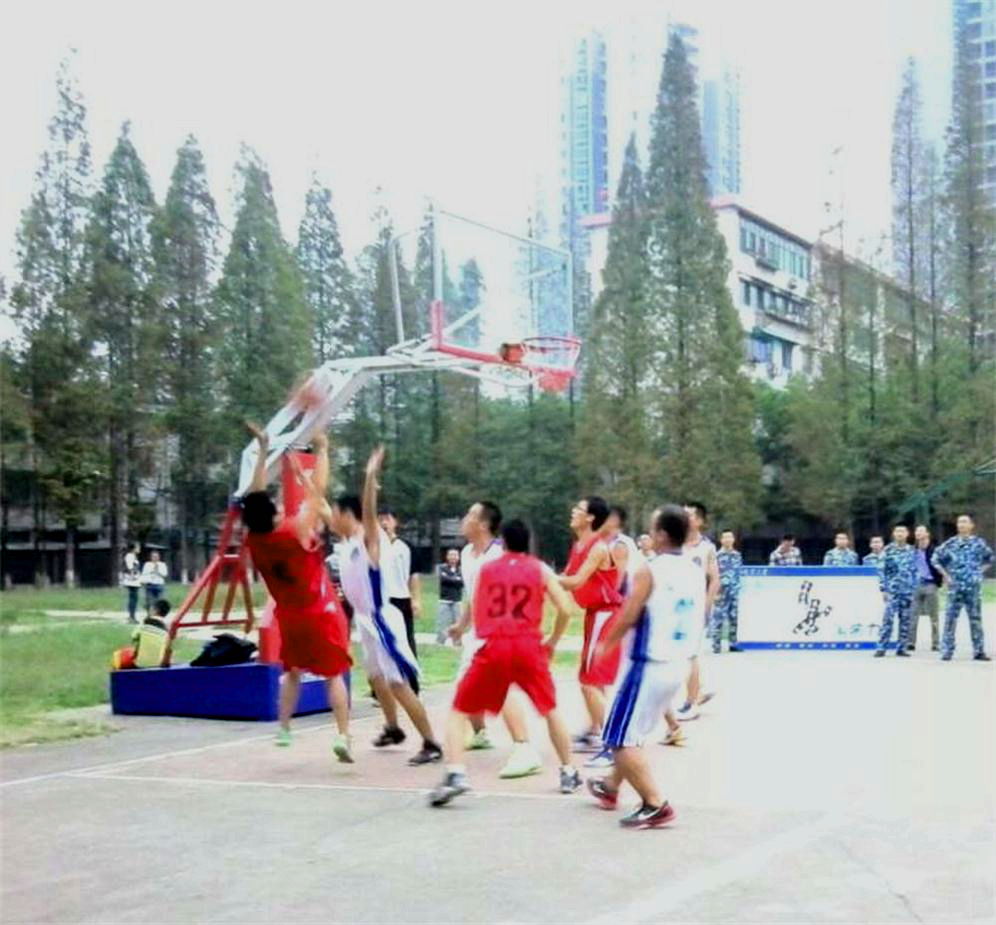 随着哨声的想起,比赛正式开始,顶着国防生高大的身姿公司顺利的抢到了球,紧接着13号三分线外果断出手,球在空中划过美丽曲线,“唰”的一声落入篮筐,为比赛拉开了精彩的序幕,随后众多选手你争我抢,各显其能。中场休息时,公司彭书记也抵挡不住篮球的魅力,他走进篮球场内,对公司篮球队的队员们进行技术上的指导幷鼓励他们。看公司火红的球服像一阵风在球场肆掠,每一次进攻,每一次防守都是一次精彩绝伦的表演,缭乱眼球。场边的加油助威声此起彼伏,一浪接着一浪。最终公司以微弱的弱势输给国防生大队。