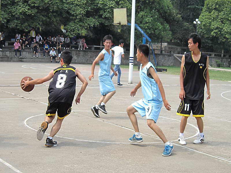 26日共有两场比赛同时展开。第一场比赛为高材111班对阵制药112班,第二场比赛为化工112班对阵制药111班。在球场上,双方队员配合默契,奋力追逐,在啦啦队的呐喊声中,凭着火热的激情,夺球、运球、传球、上篮、得分,一系列的动作在队员们默契的配合中完成。最终,比赛以高材111班和化工112班的胜出而结束。