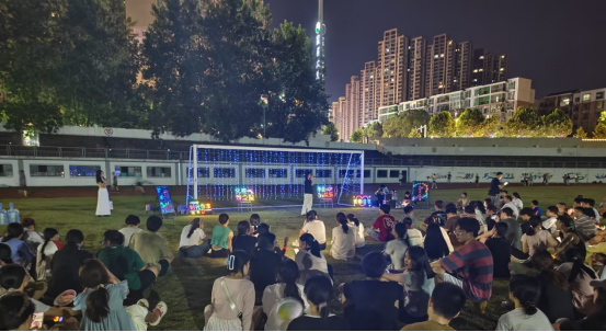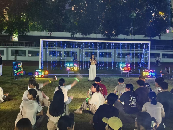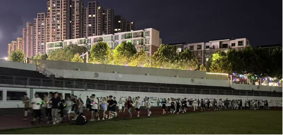 当发令声响,同学们手上的定制夜光手环瞬时点亮跑道,如一条流动的星河环绕操场。毕业生们并肩奔跑,每一步都踏着离歌的韵律,每一步都迈向崭新的远方。点点荧光在夜色中跳跃、汇聚,仿佛青春的星火永不熄灭,照亮前行的路途。