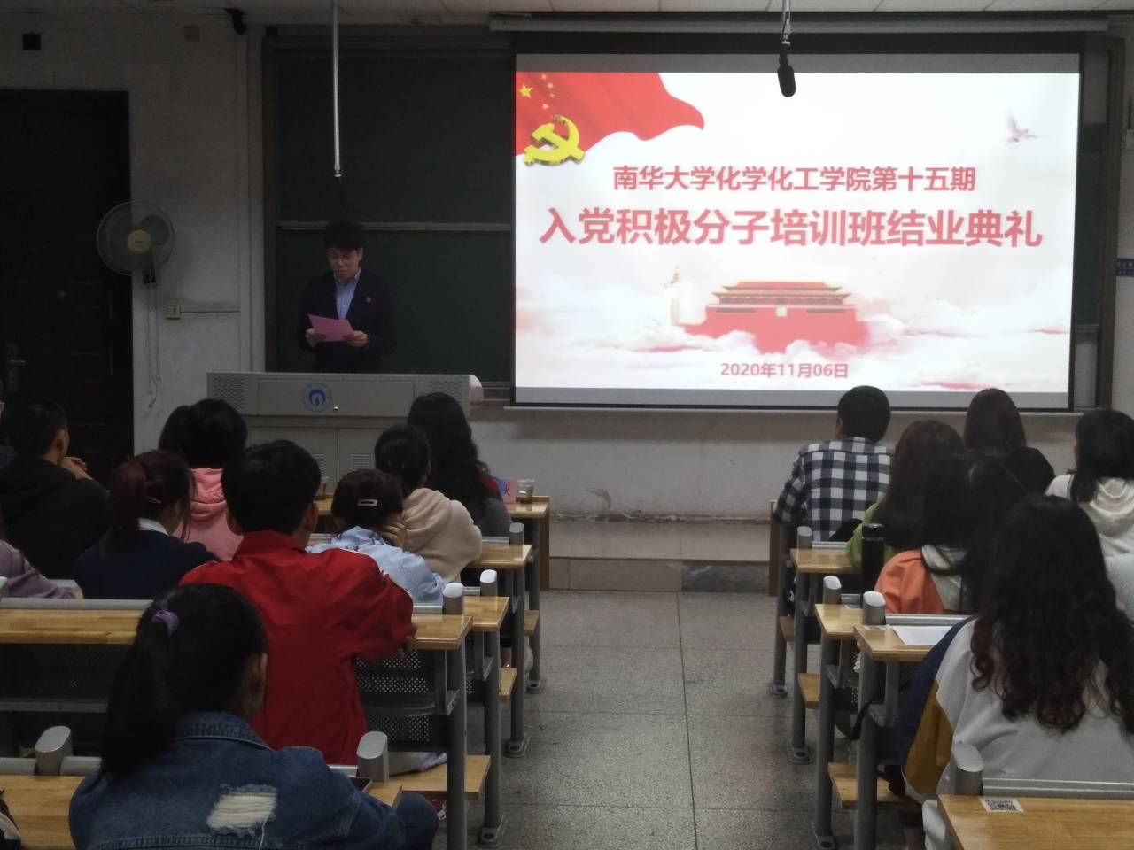 11月6日晚,sunbet申搏sunbet申搏于红湘校区化工楼401教室举办2020年秋季入党积极分子培训结业典礼。院党委副书记余晓秋、制药及高材员工党支部书记陈楠、化工及无机非员工党支部副书记颜晔以及培训班学员参与此次典礼。此次会议由颜晔主持。